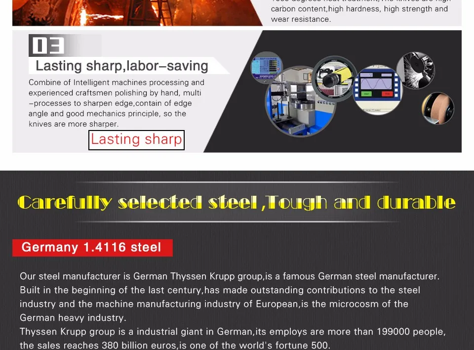 Material : 1.4116 Molybdenum vanadium steel of Germany ThyssenKrupp Ggroup.